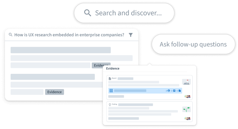 With AI search in Slack and Microsoft Teams, stakeholders can surface research findings without leaving their workflow, extra logins, or waiting.